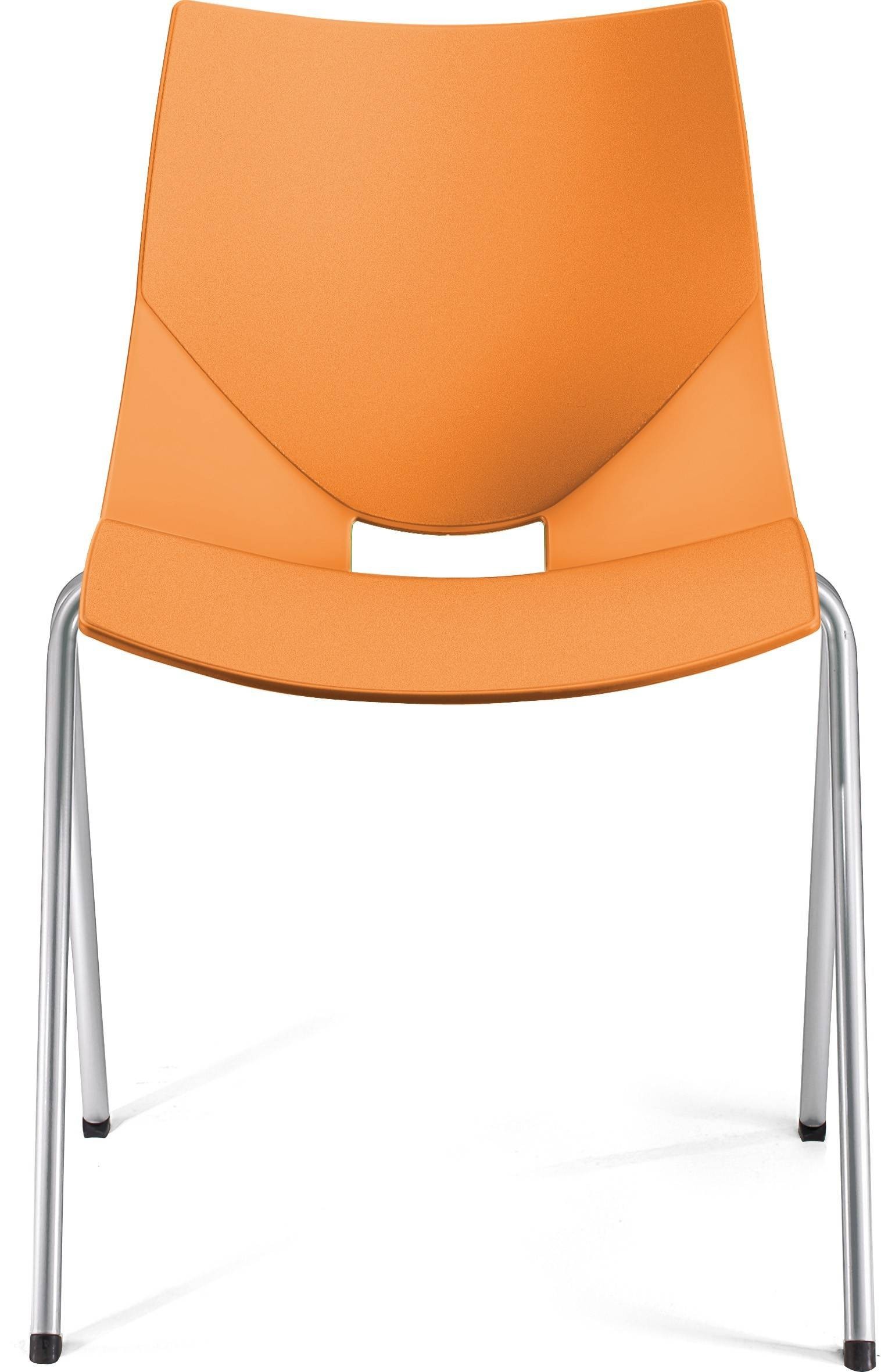 Set 4 sedie SORA impilabili con struttura in metallo, seduta e schienale in plastica arancione.