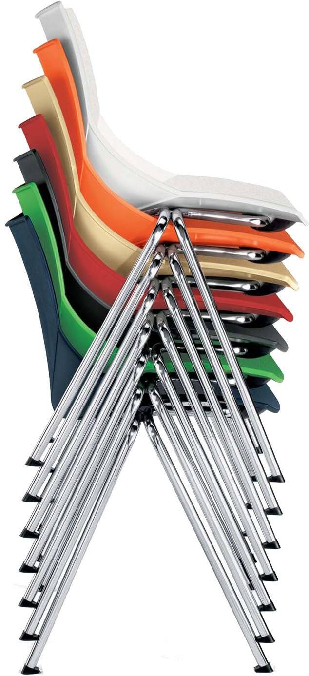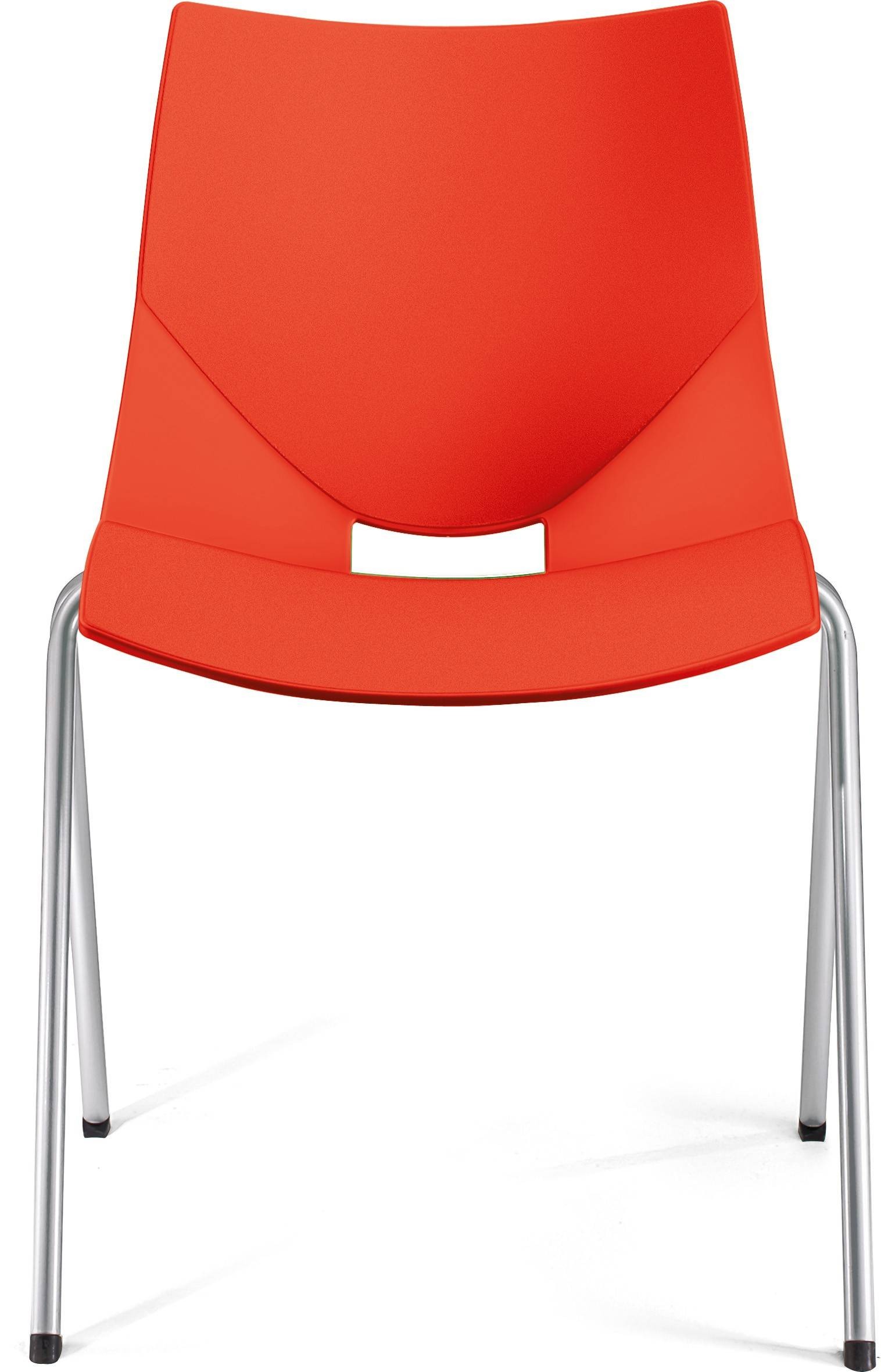 Set 4 sedie SORA impilabili con struttura in metallo, seduta e schienale in plastica rossa.