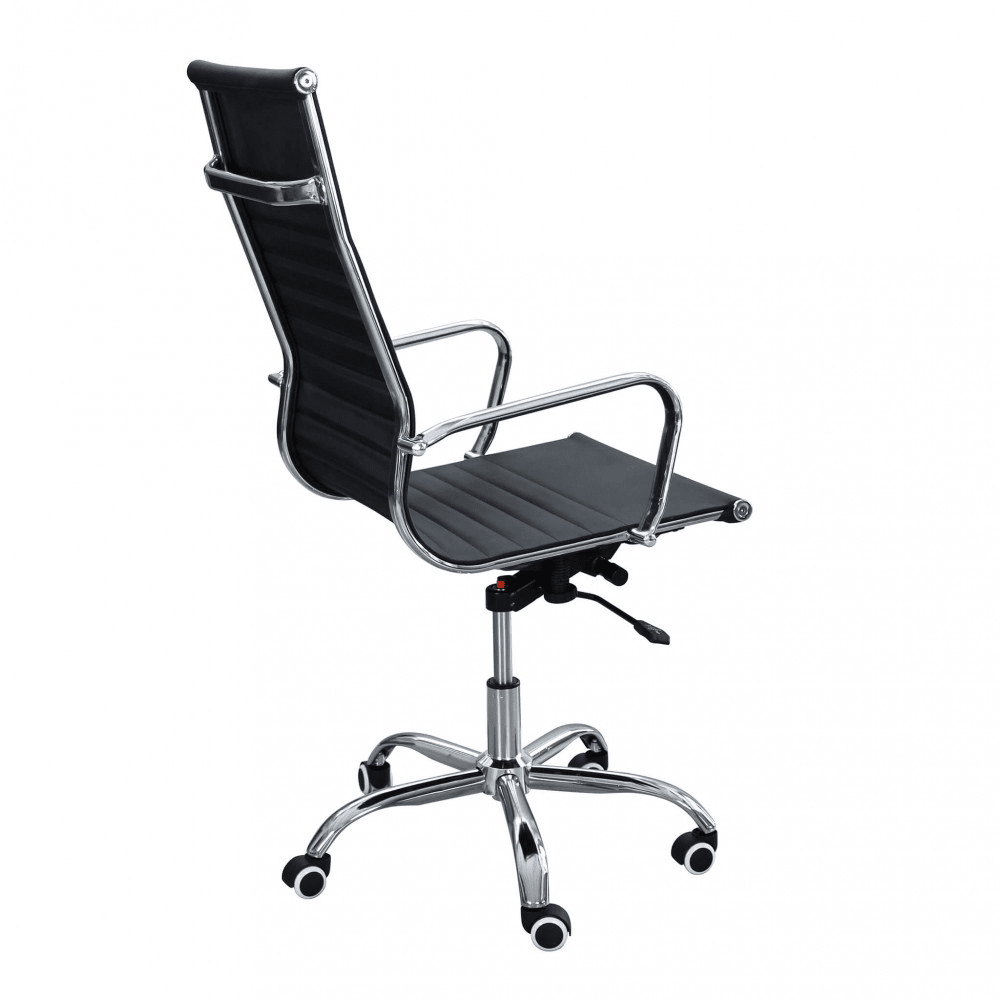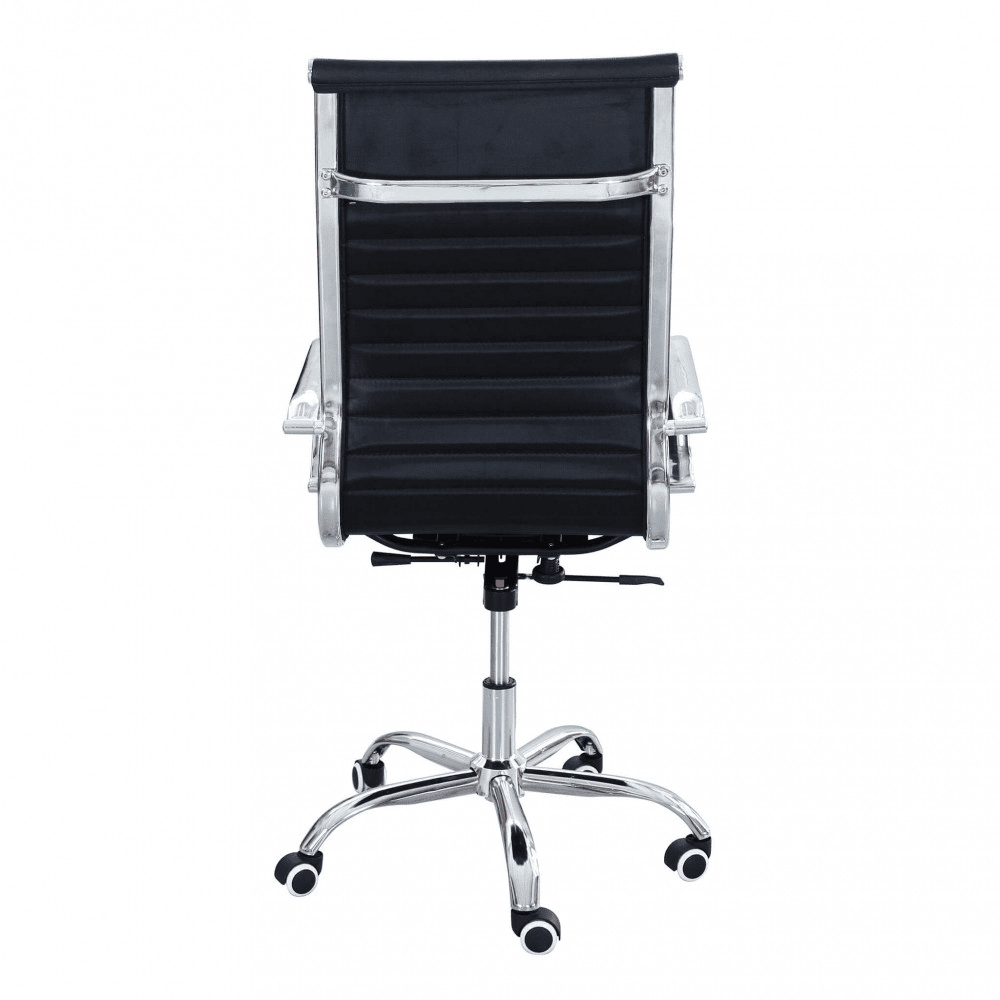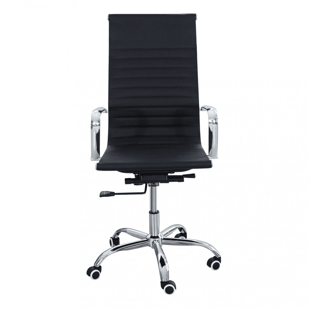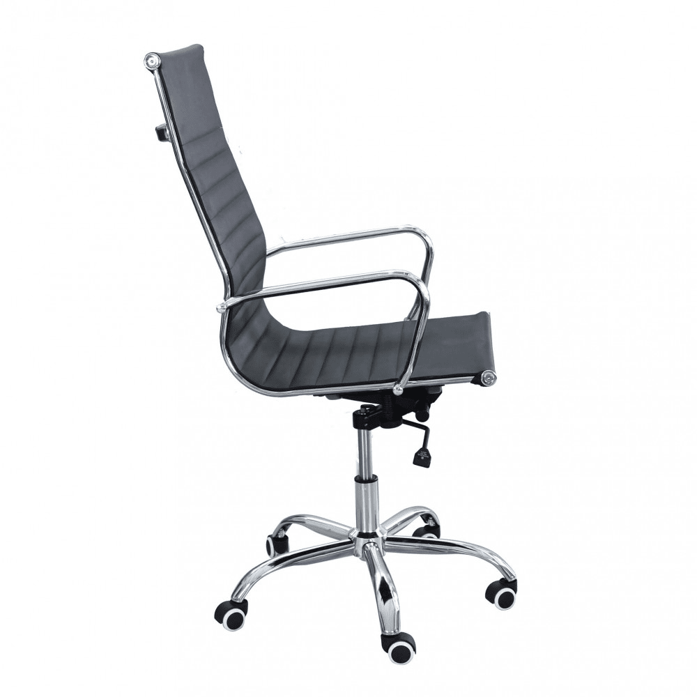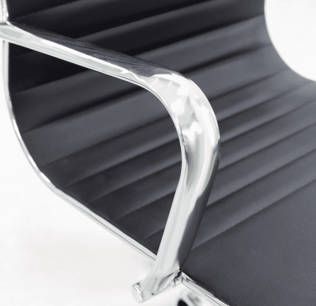 Poltrona da ufficio in PU, braccioli cromati e base cromata con ruote
