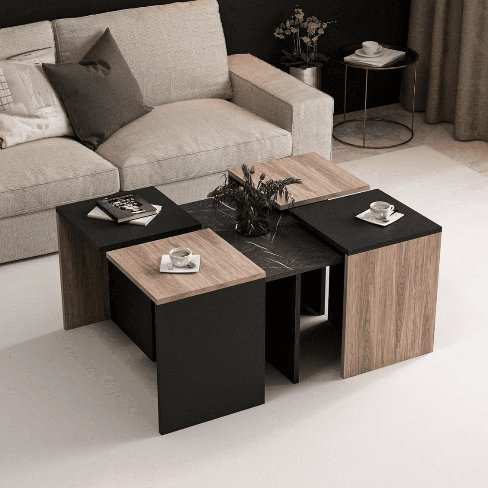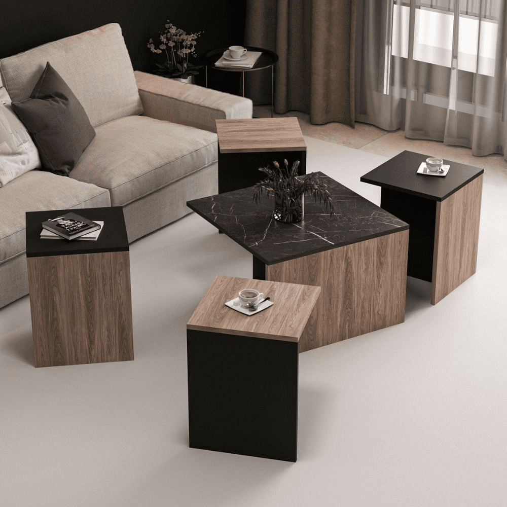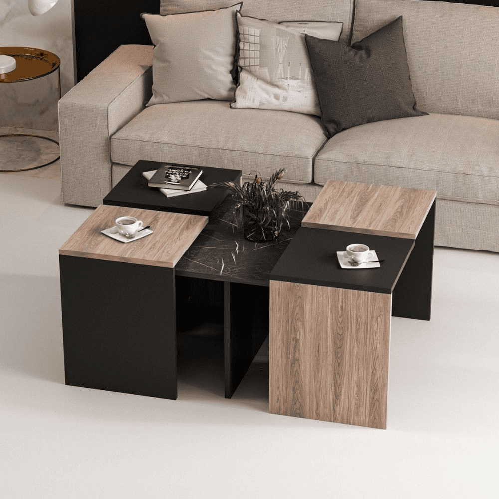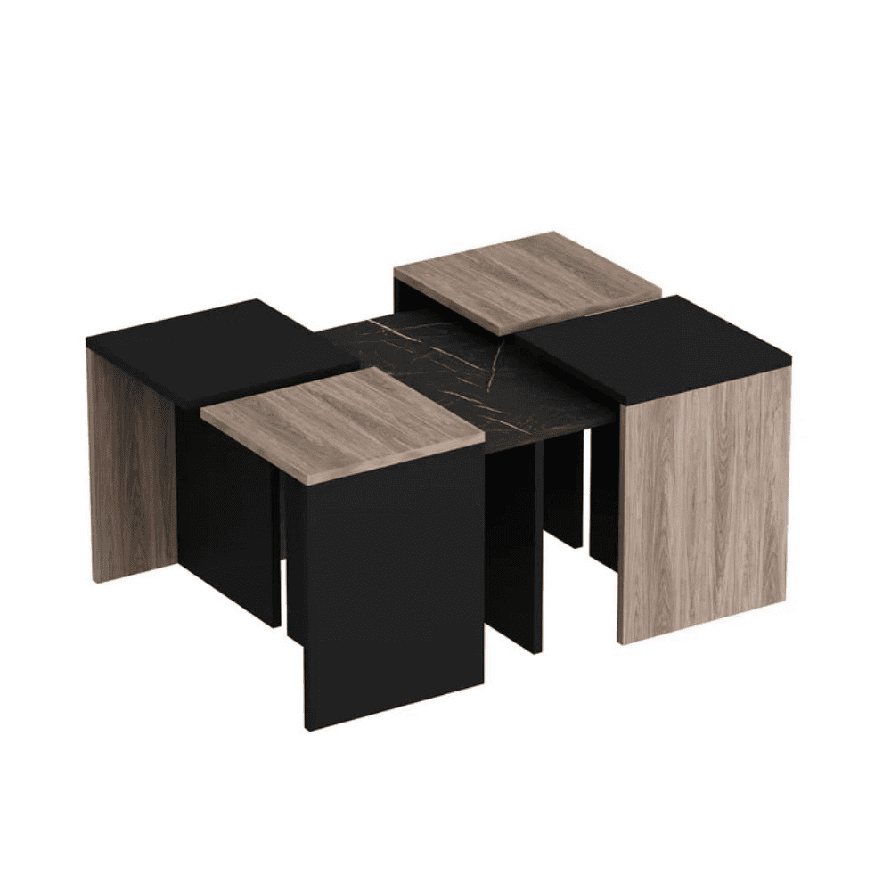Set tavolini da salotto nero e noce nucleo effetto marmo Owentav