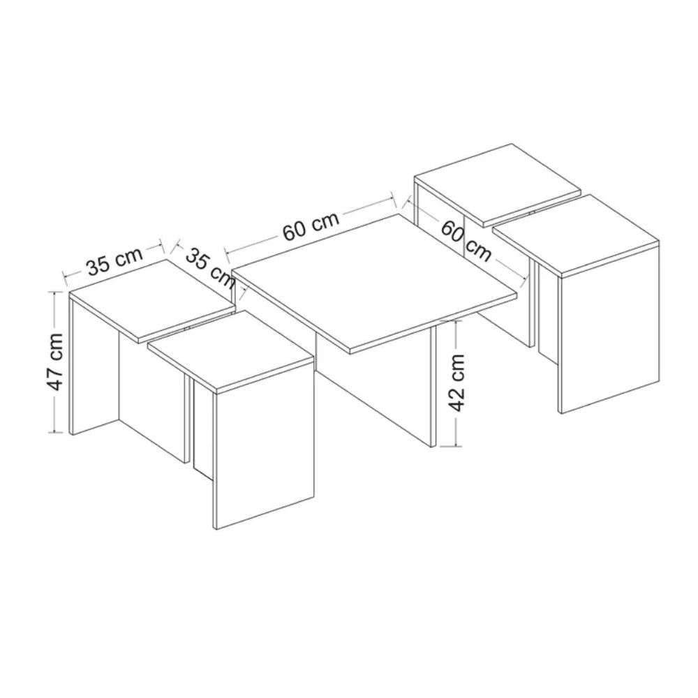 4 tavolini 35x35x47 h cm.