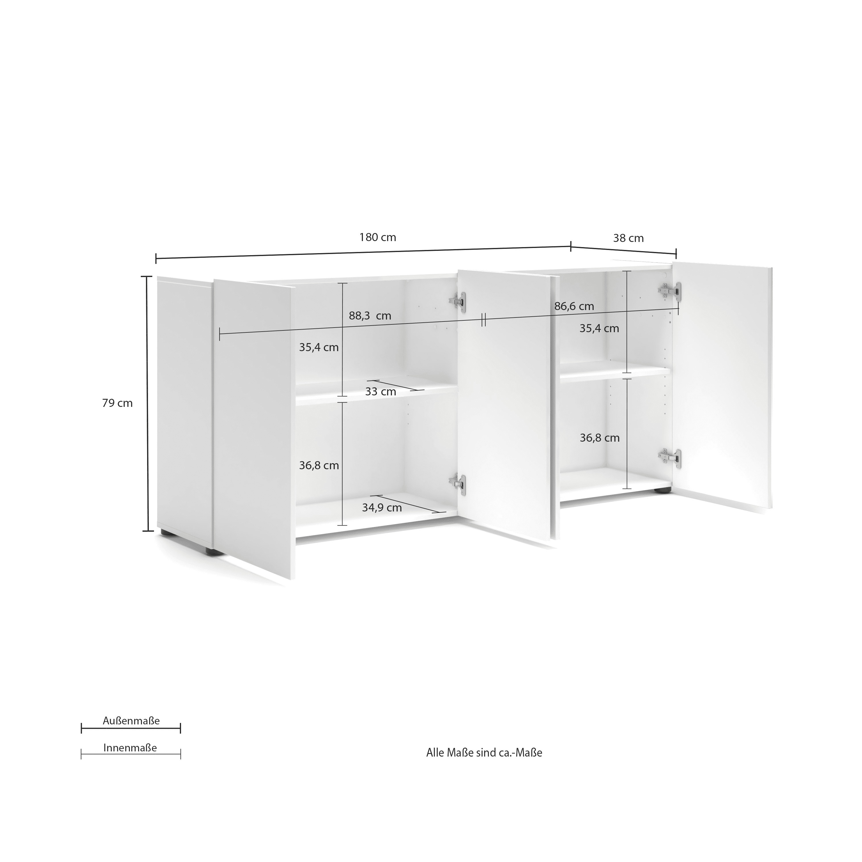 Il sideboard a 4 ante Mister è un elemento d’arredo versatile ed elegante, ideale per completare gli spazi della tua casa con stile. Grazie al suo design essenziale e moderno, si adatta facilmente a diversi ambienti, offrendo un tocco di luminosità e raffinatezza.