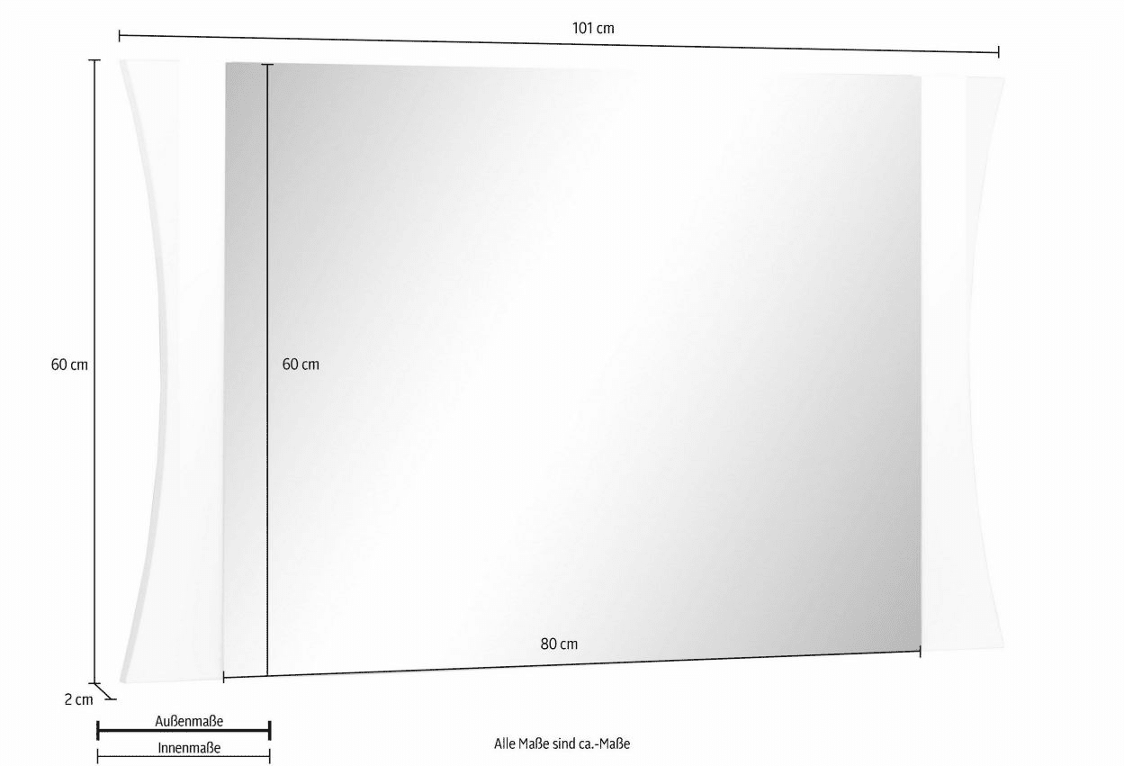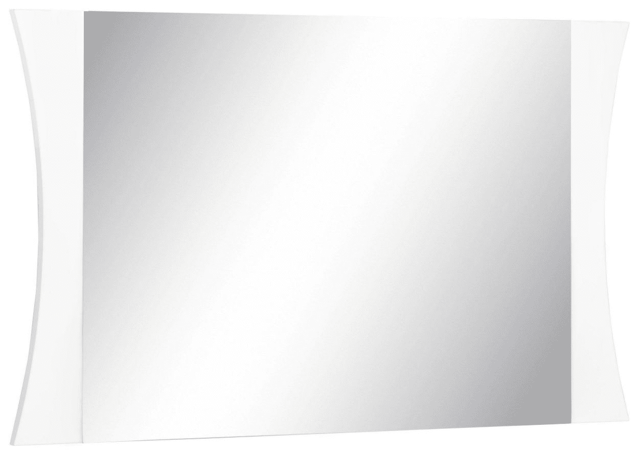 È splendidamente progettata con i lati a forma di arco anche nello specchio con bordatura in melaminico laccato bianco lucido.