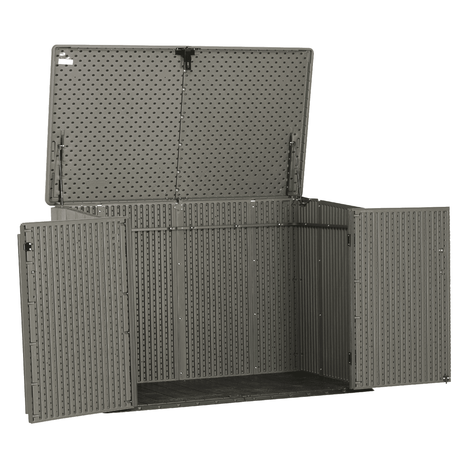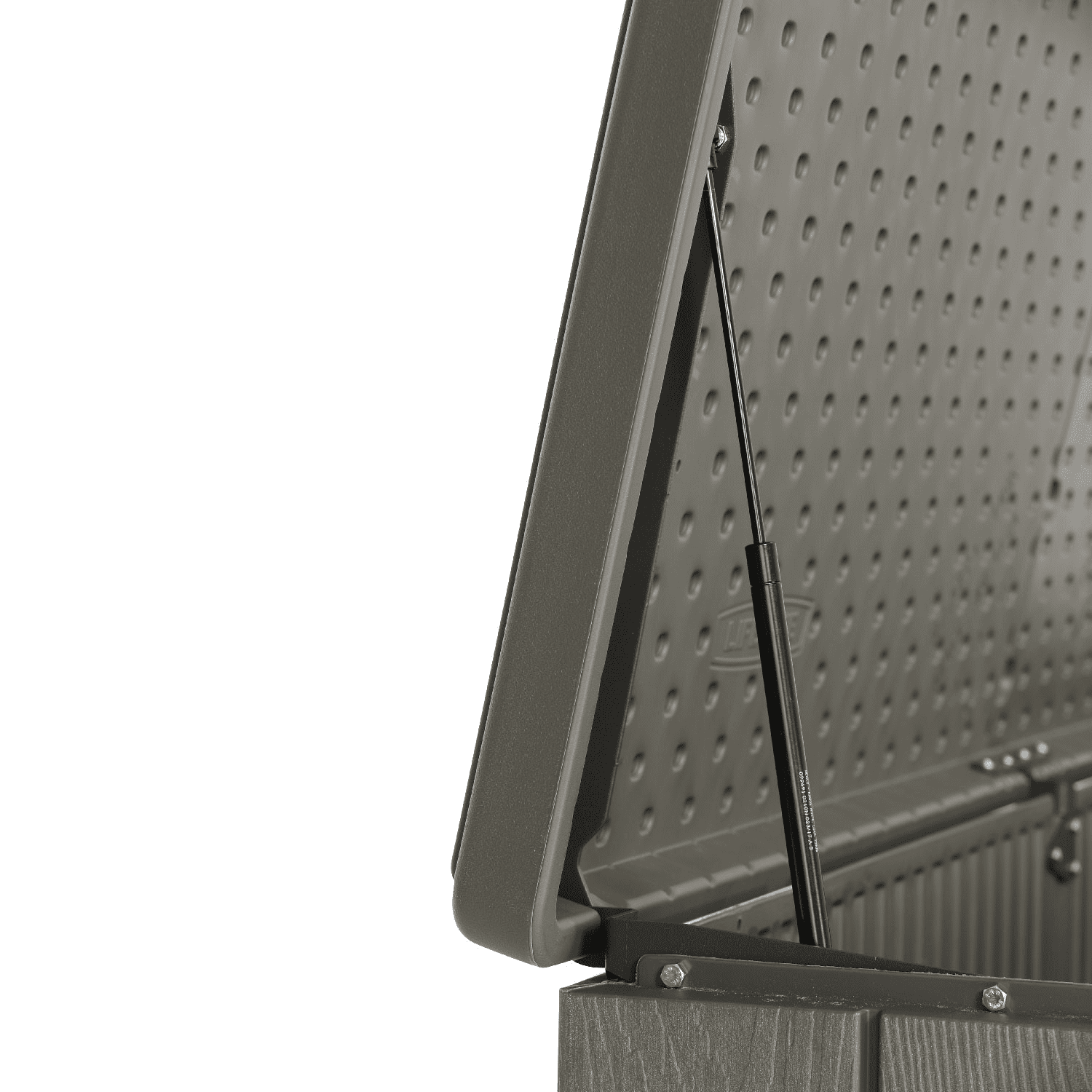La struttura rigida in polietilene ad alta densità a doppia parete (HDPE) e acciaio verniciato a polveri rende il baule robusto e durevole, resistente alle intemperie protegge qualsiasi oggetto contenuto.