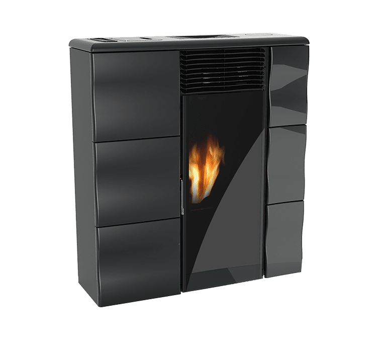 Olga 501L è una stufa a pellet canalizzata slim dal design elegante e moderno e dagli dimensioni contenute.