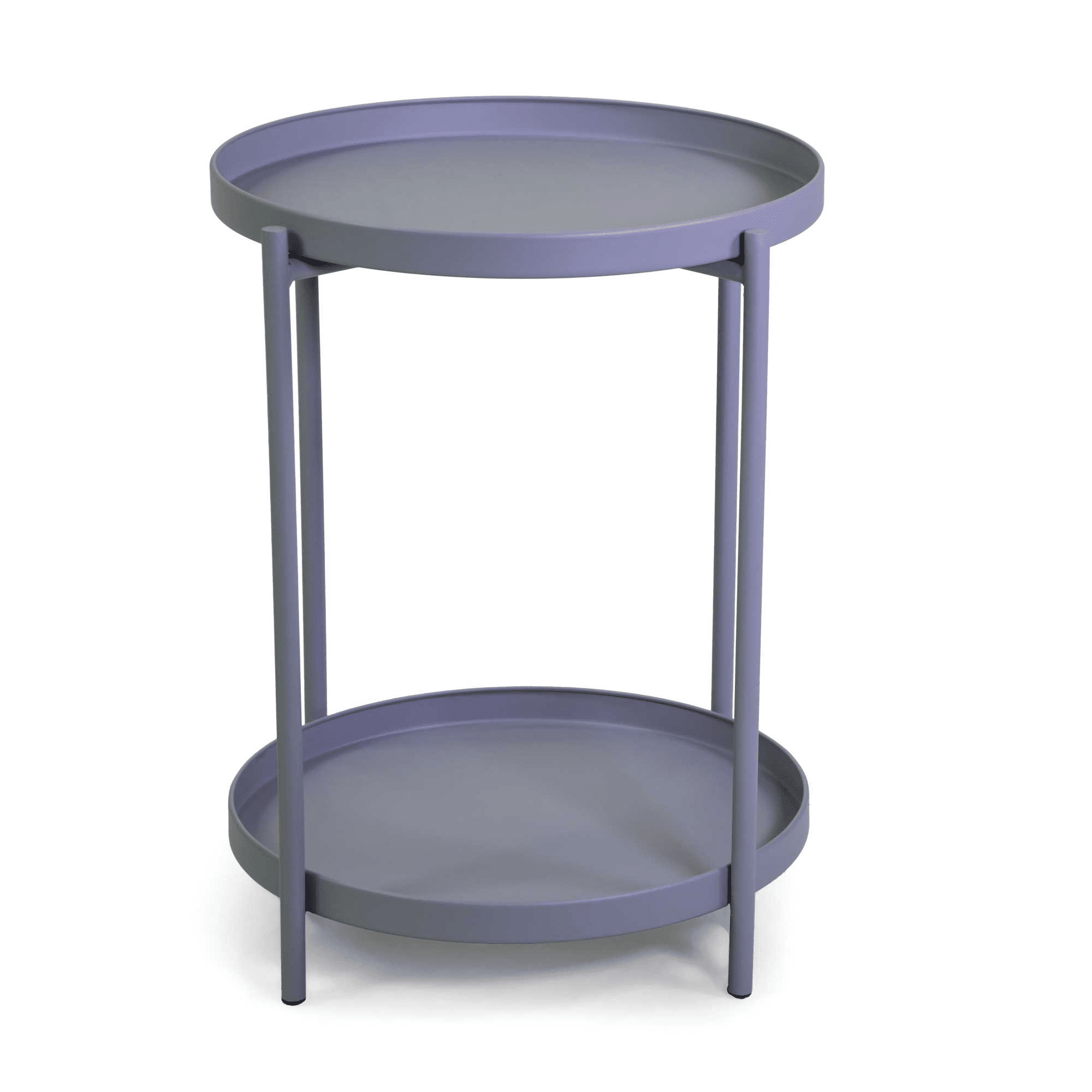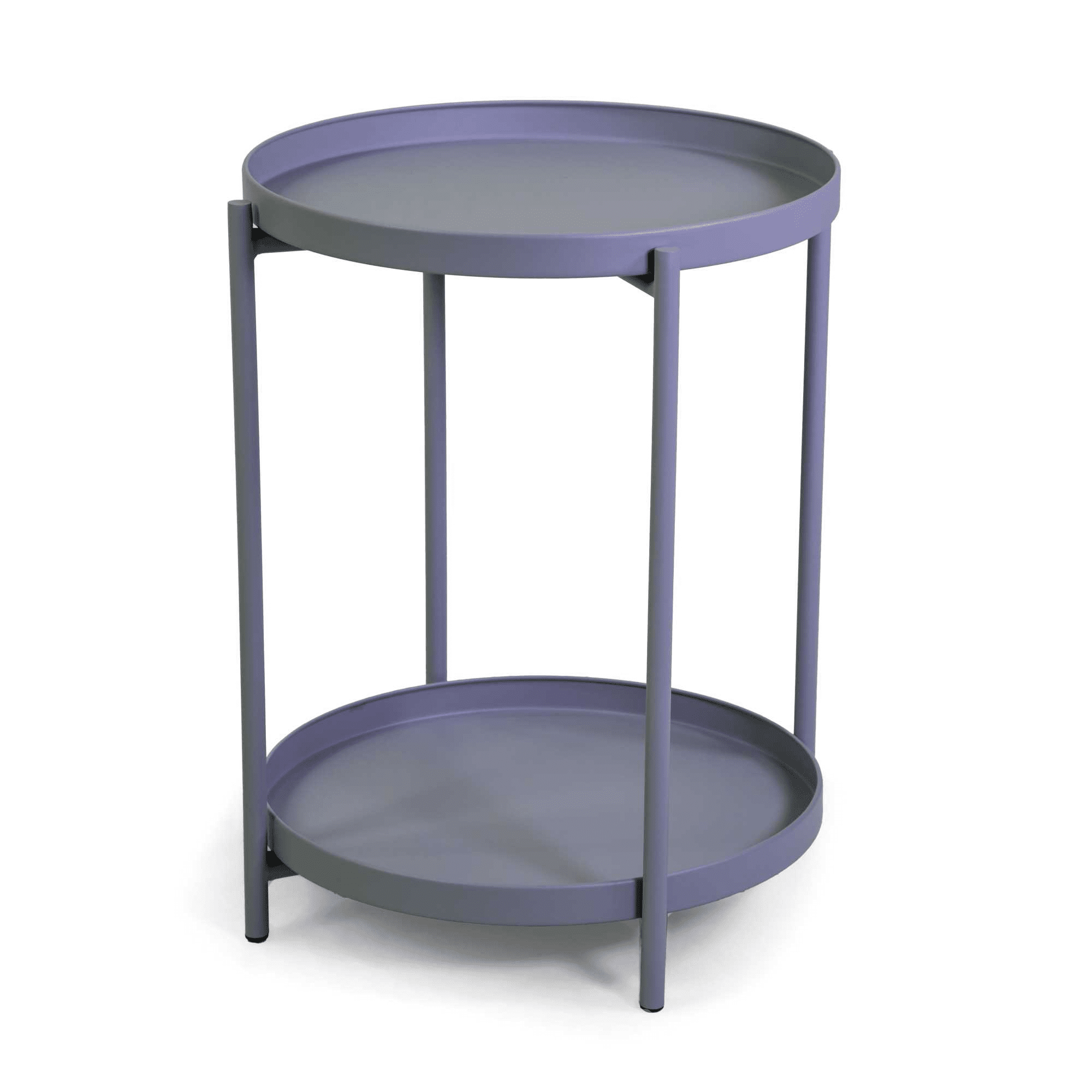 Tavolino metallo grigio tondo 2 piani cm ø40h50