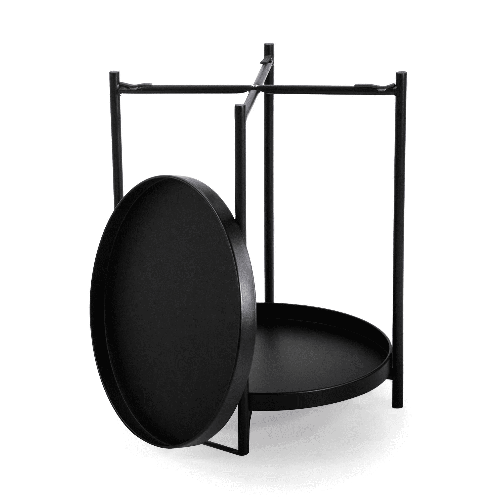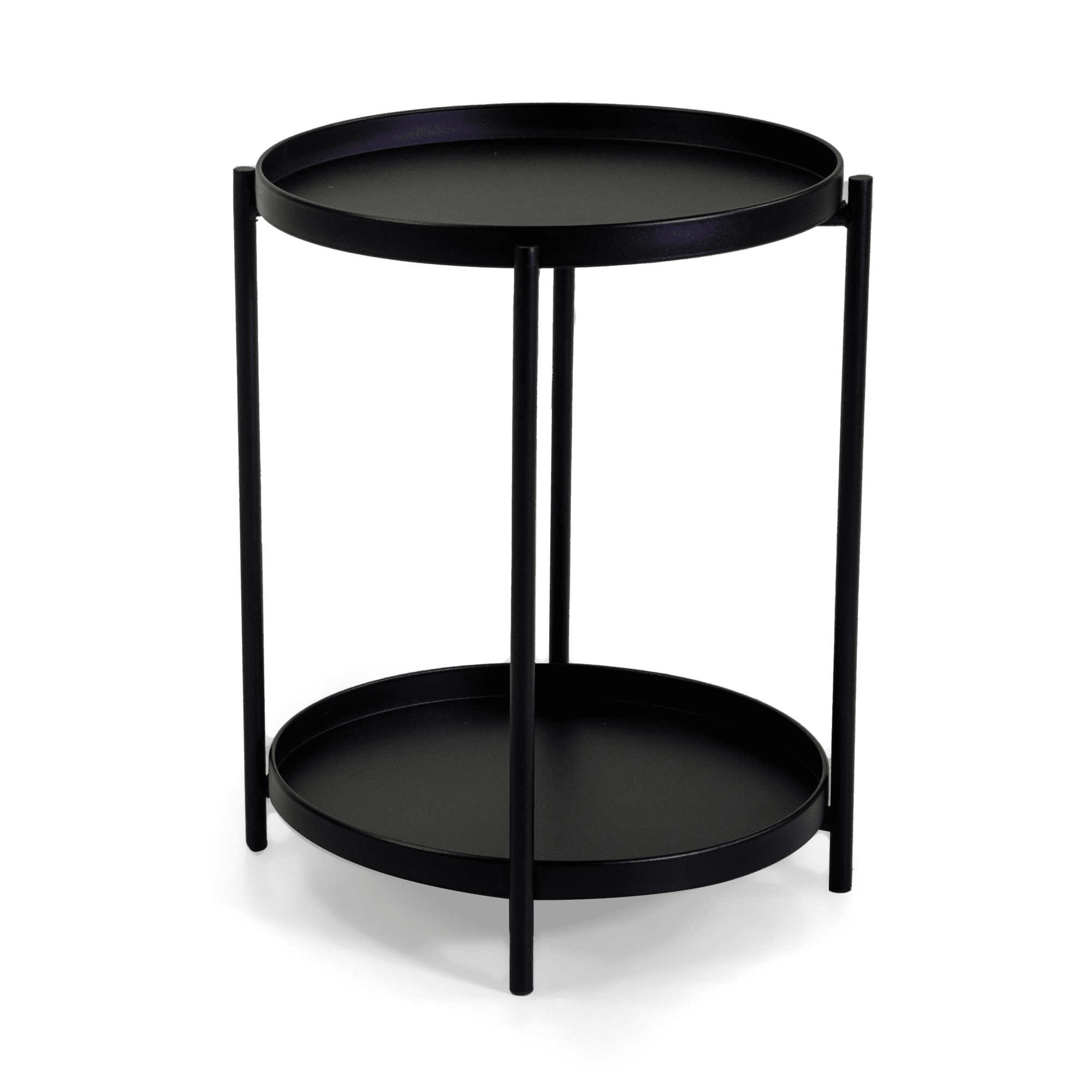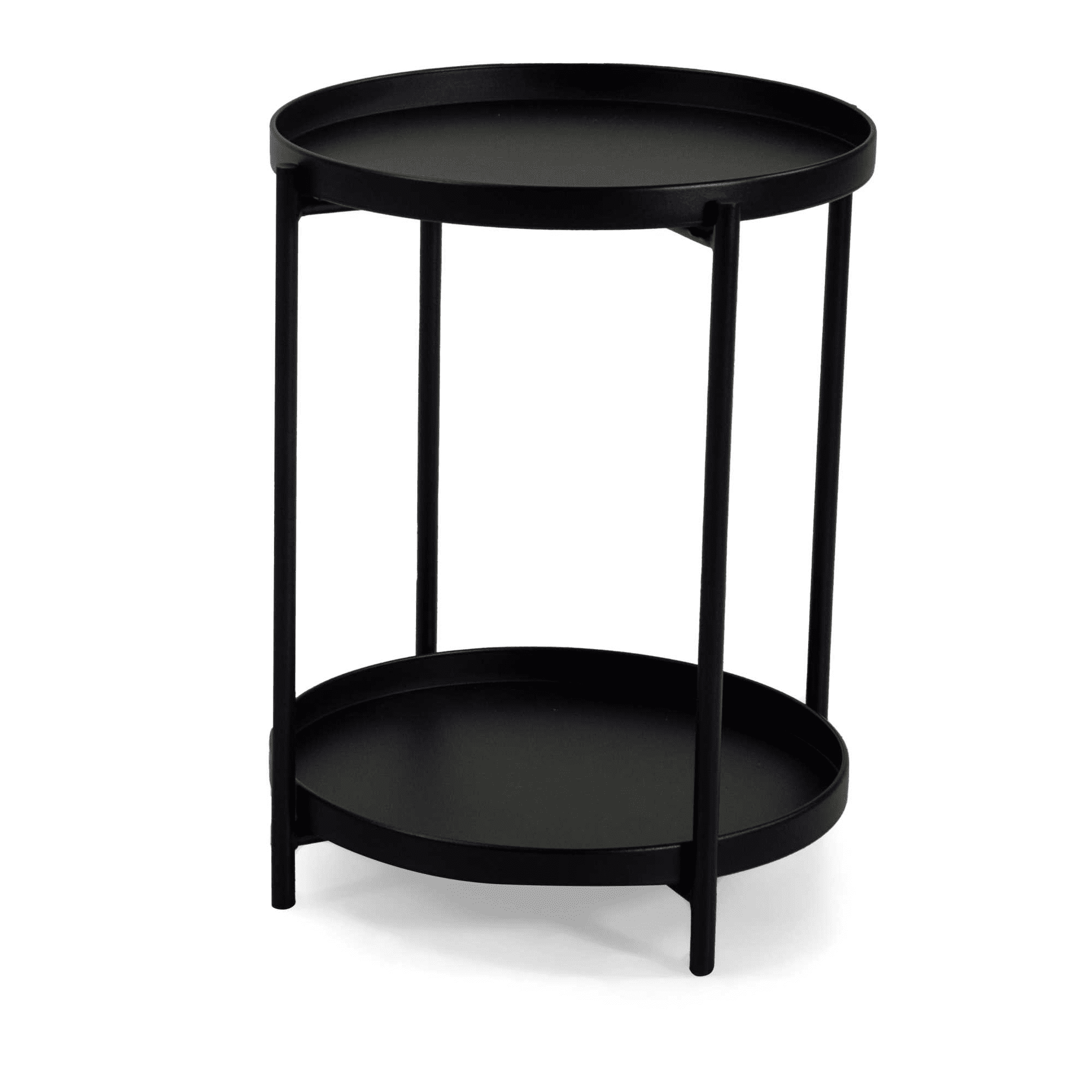 Tavolino metallo nero tondo 2 piani cm ø40h50