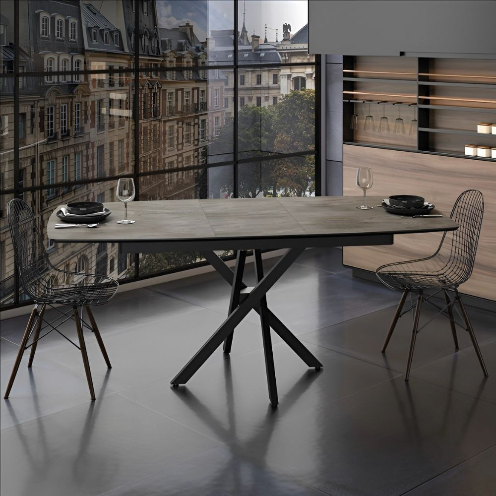 Tavolo allungabile Filis piano effetto marmo ardesia opaco e gambe in metallo nero