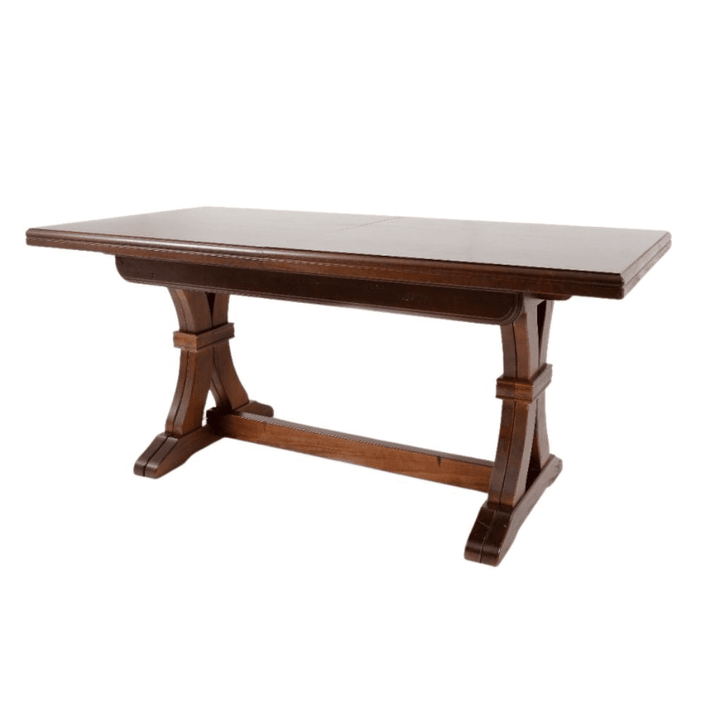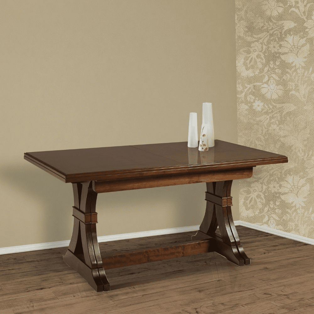 Robusto tavolo rettangolare allungabile, piano impiallacciato struttura in legno massello.