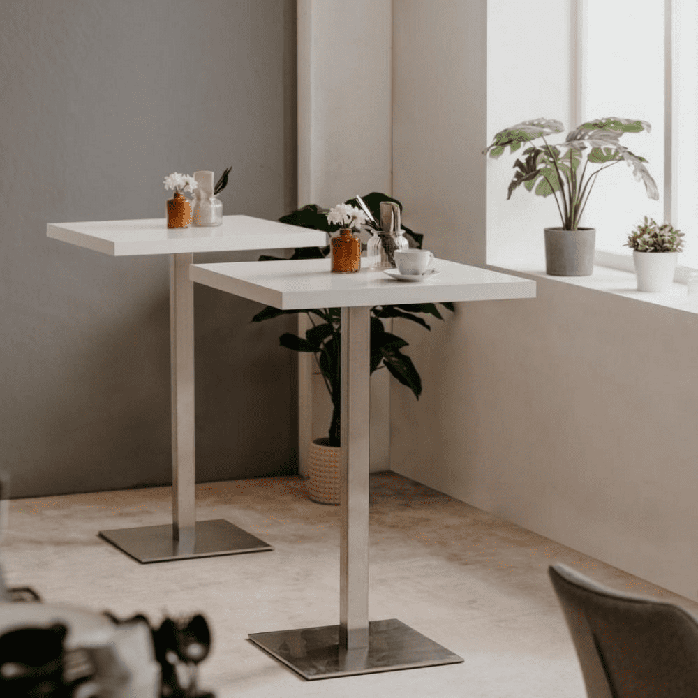 Tavolo alto Quadrato 105 cm piano bianco e base cromo