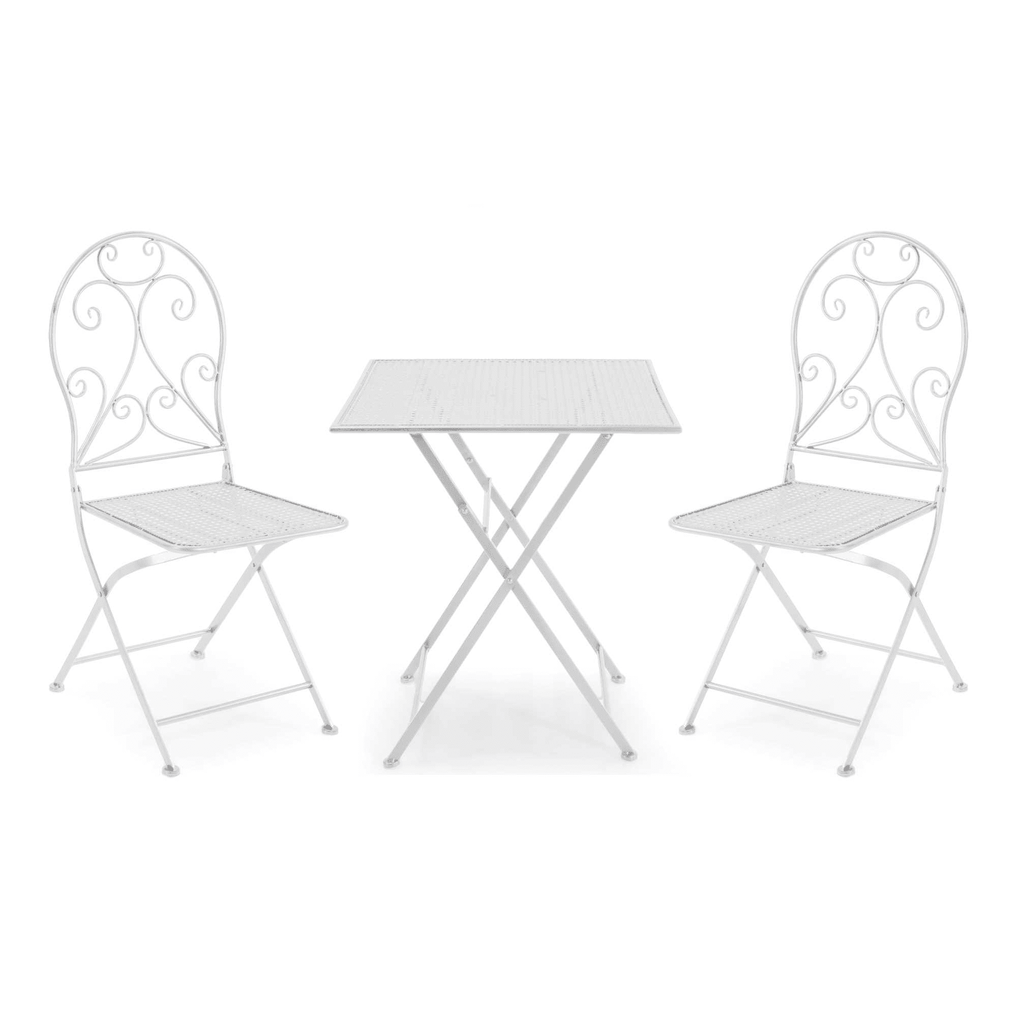 Tavolo metallo Leila bianco quadro con 2 sedie cm 60x60h71