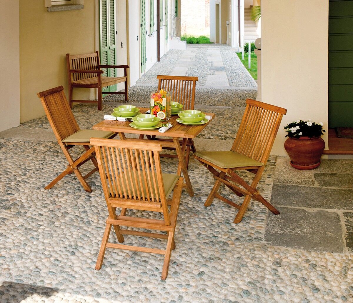 Porta tuoi ospiti nel tuo giardino ben arredato e accogliente grazie agli arredamenti di MobileInKit, proprio come il tavolo da giardino quadrato.