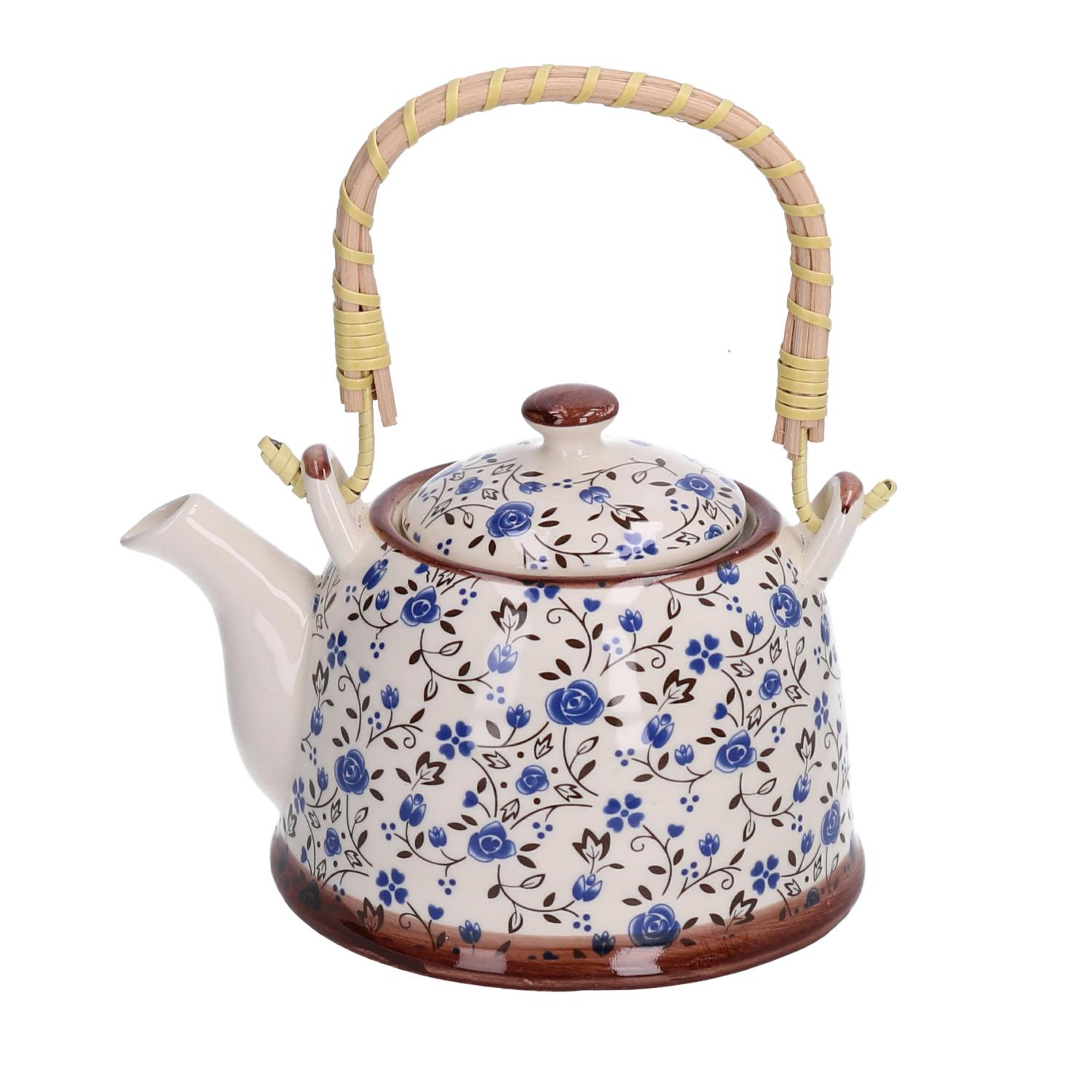 Teiera ceramica bianco con fiori blu tondo cmø15h14