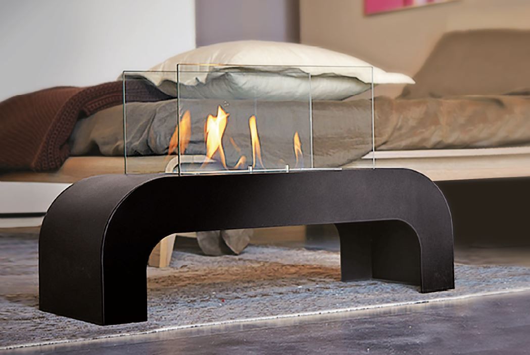 Biocamino da pavimento. Potenza: 2000W, Bruciatore 1.5L, Peso 10kg. Dimensioni del biocamino: 455x755x300. Colore nero
