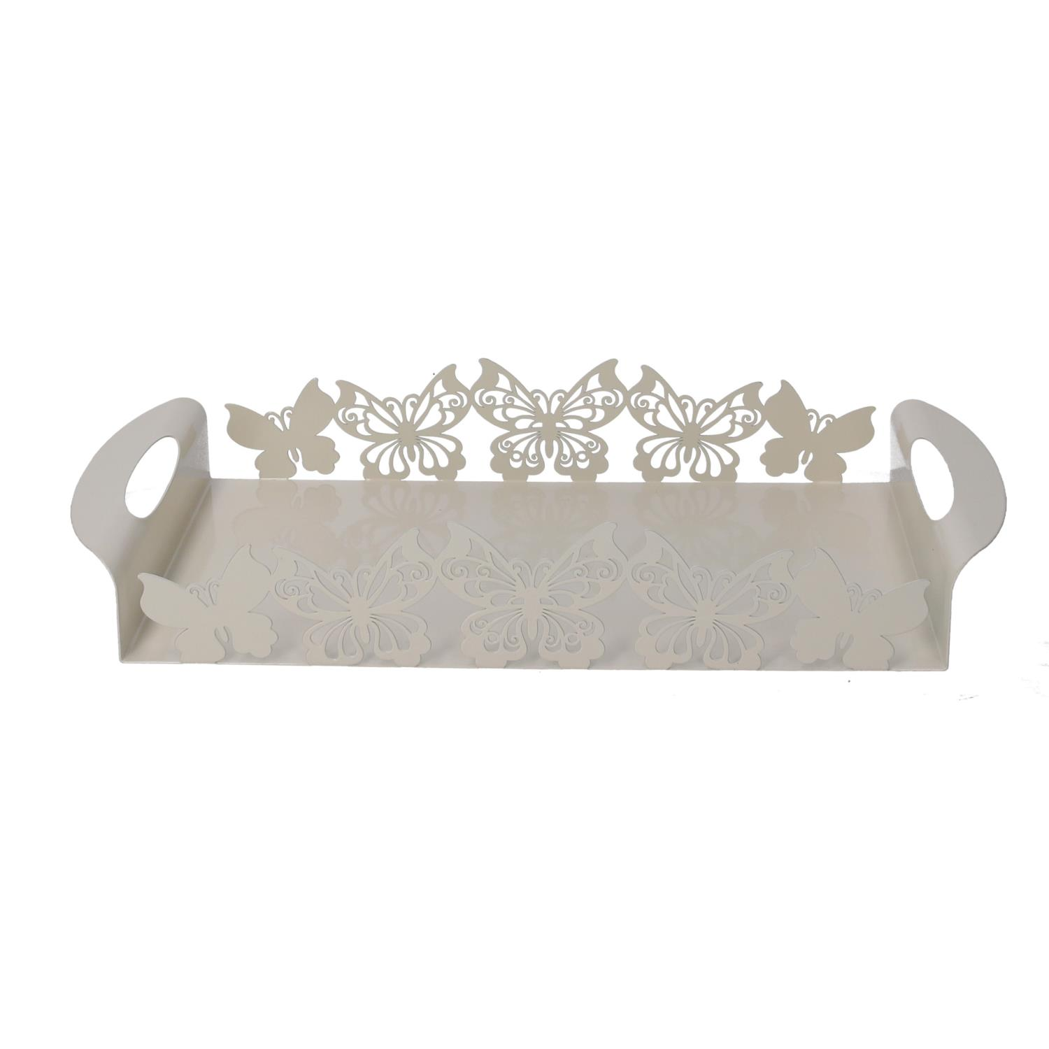 Vassoio metallo farfalla crema rettangolare cm41x20h6,5