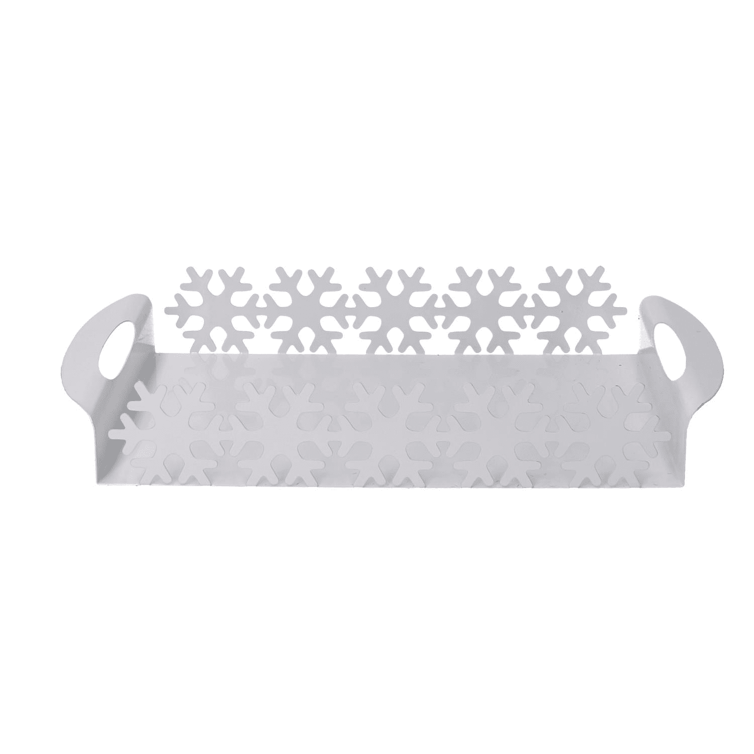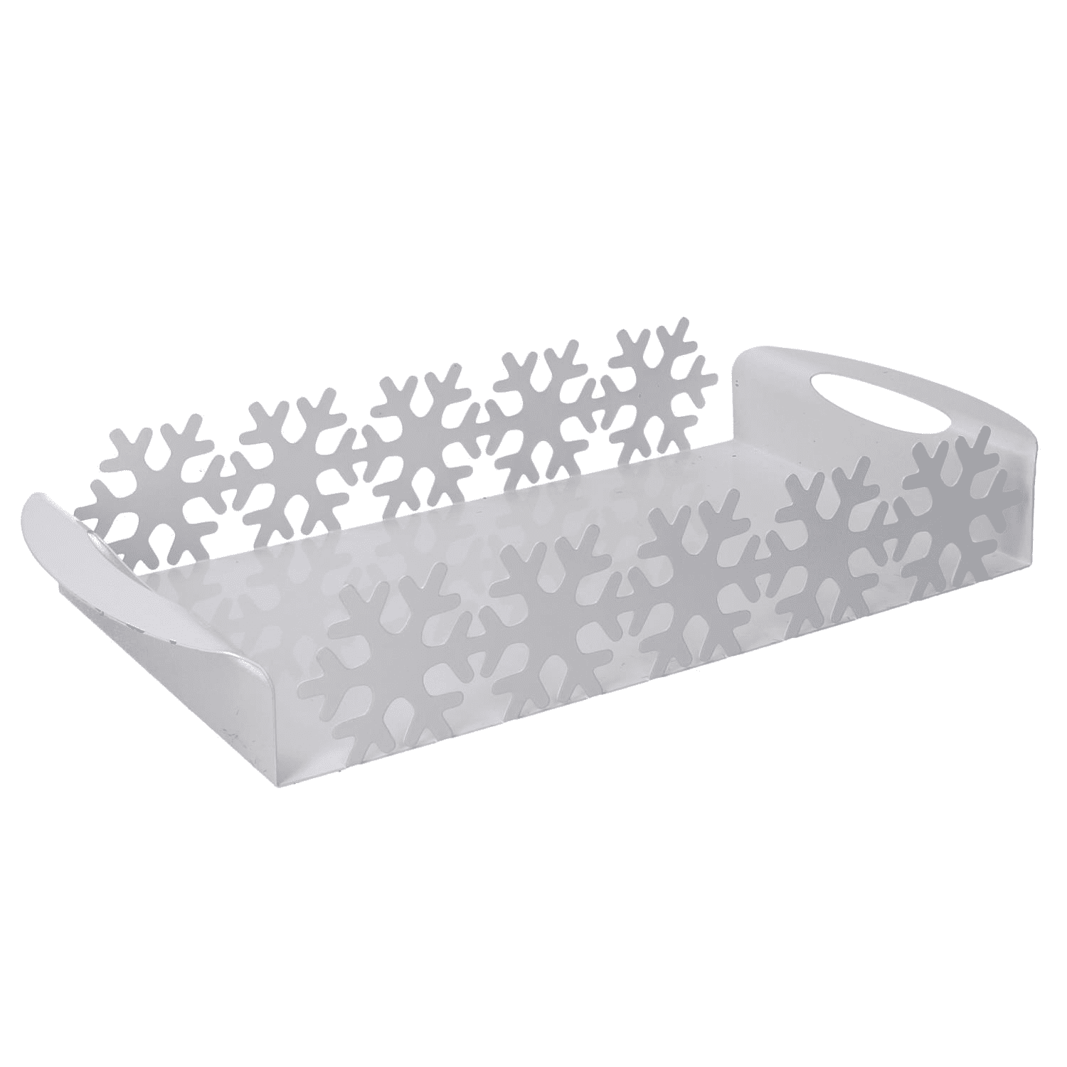 Vassoio metallo fiocco neve bianco rettangolare cm 41x20h6,5