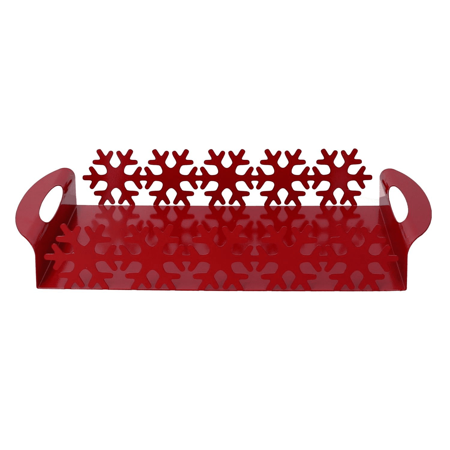Vassoio metallo fiocco neve rosso rettangolare cm 41x20h6,5