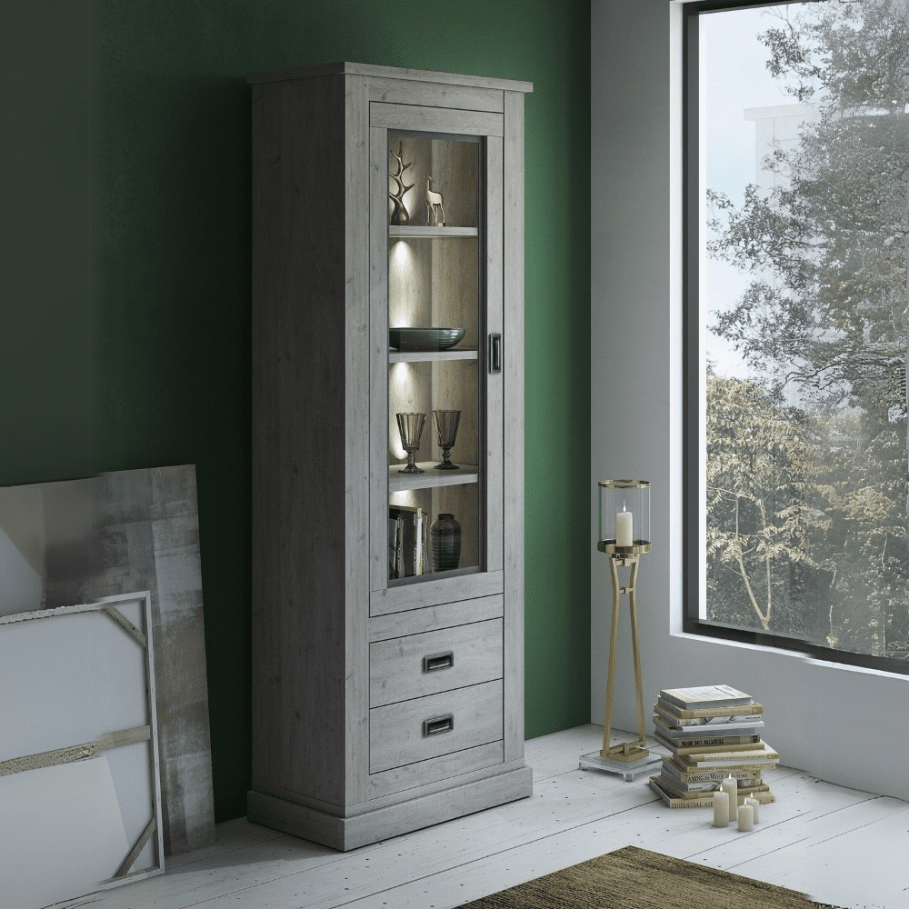 Vetrina Anthony23 con anta a vetro e due cassetti colore ancona oak