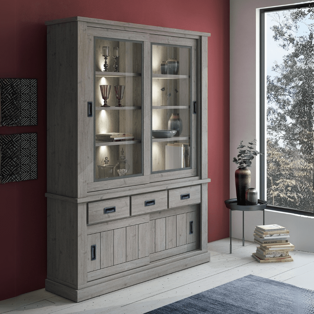 Vetrina Anthony67120 con 2 ante vetro e 3 cassetti colore ancona oak