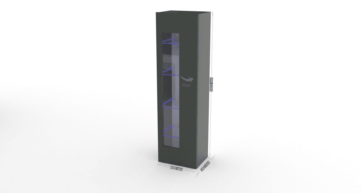 Il suo design lineare e minimalista si adatta perfettamente a diversi stili di arredamento, aggiungendo un tocco di raffinatezza e contemporaneità al tuo ambiente. La finitura in melaminico antracite lucido conferisce un aspetto luminoso e moderno, valorizzando ulteriormente la bellezza della vetrina.