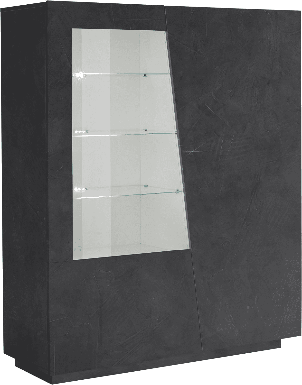 La vetrina VEGA è costituita da 2 ante battenti con il taglio in diagonale di cui una riquadrata con vetro.
